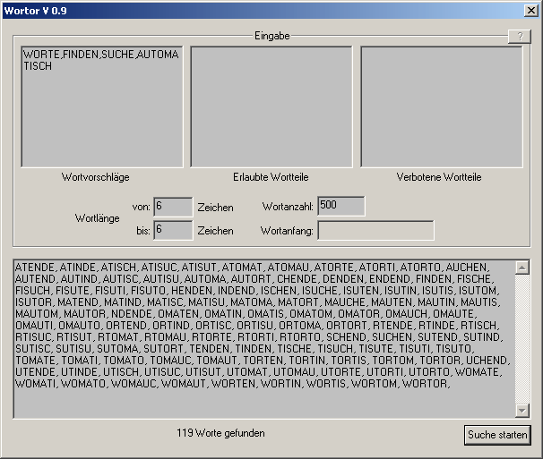 Wortor ist ein Programm das einem helfen kann neue Wortschöpfungen zu finden. Systematisch werden